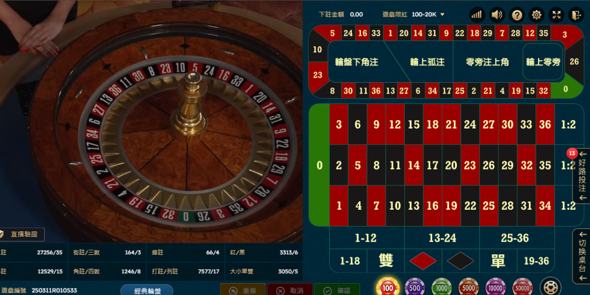 - 歐式輪盤(單零):賠率較高,適合新手玩家。
